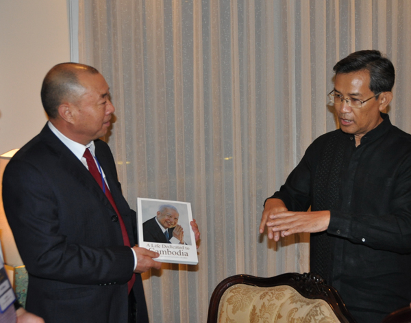 (柬副總理索安閣下受簡興福先生贈予名貴四川蜀錦)