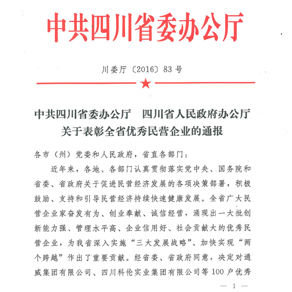 熱烈祝賀川開實業(yè)集團 榮獲“2016四川省優(yōu)秀民營企業(yè)”榮譽稱號