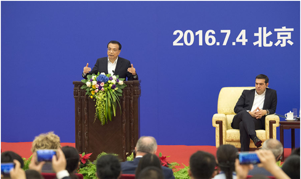 國務院總理李克強在北京人民大會堂同希臘總理齊普拉斯共同出席第二屆中希海洋合作論壇并發(fā)表致辭