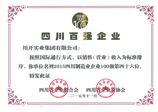 熱烈祝賀川開集團(tuán)榮獲 2015年四川百強(qiáng)企業(yè)等榮譽(yù)稱號