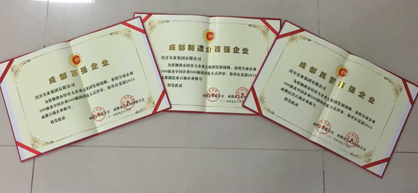 從成都企業(yè)聯(lián)合會、成都市工業(yè)經(jīng)濟(jì)聯(lián)合會主辦的“2015成都百強(qiáng)企業(yè)發(fā)布暨企業(yè)發(fā)展高峰論壇”獲悉,我集團(tuán)榮獲“2015年成都企業(yè)100強(qiáng)企業(yè)”(排名66位)、“2015年成都制造業(yè)100強(qiáng)”(排名29位)、“2015年成都民營企業(yè)100強(qiáng)”(排名26位)榮譽(yù)稱號。