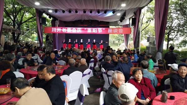 秋風(fēng)送爽,瓜果飄香。在全國人民歡慶十九大勝利召開之際,又迎來了中國的傳統(tǒng)節(jié)日——“九九”重陽節(jié)。為充分體現(xiàn)集團(tuán)對退休職工的關(guān)懷和問候,集團(tuán)于2017年10月25日、26日分別在華陽、正興舉行了座談會,老同志們歡聚一堂,看到闊別已久的同事,臉上都洋溢著歡聚的喜悅。華陽老年大學(xué)也送來了歌舞助興。